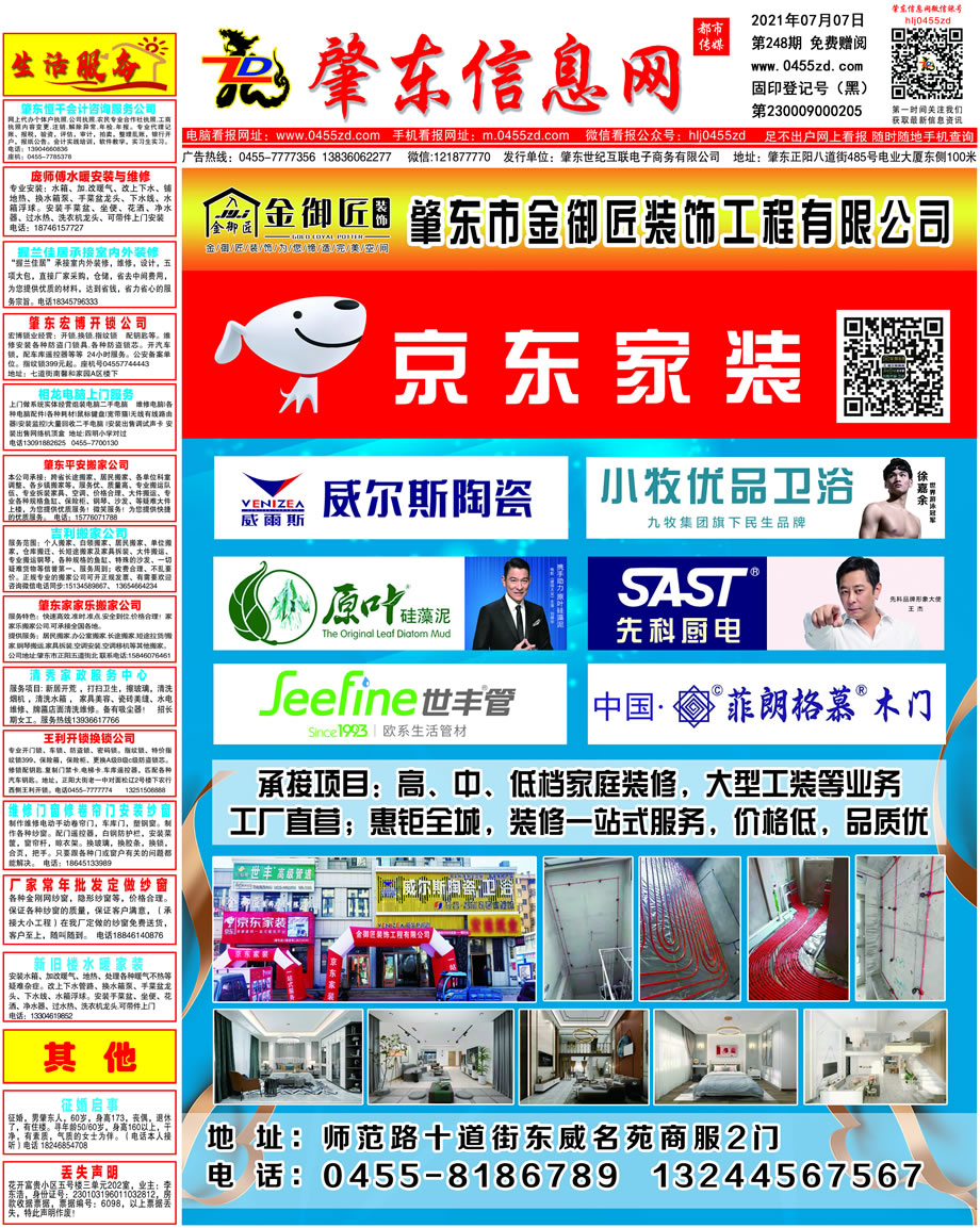 肇東信息網DM報紙2021年7月7日第248期