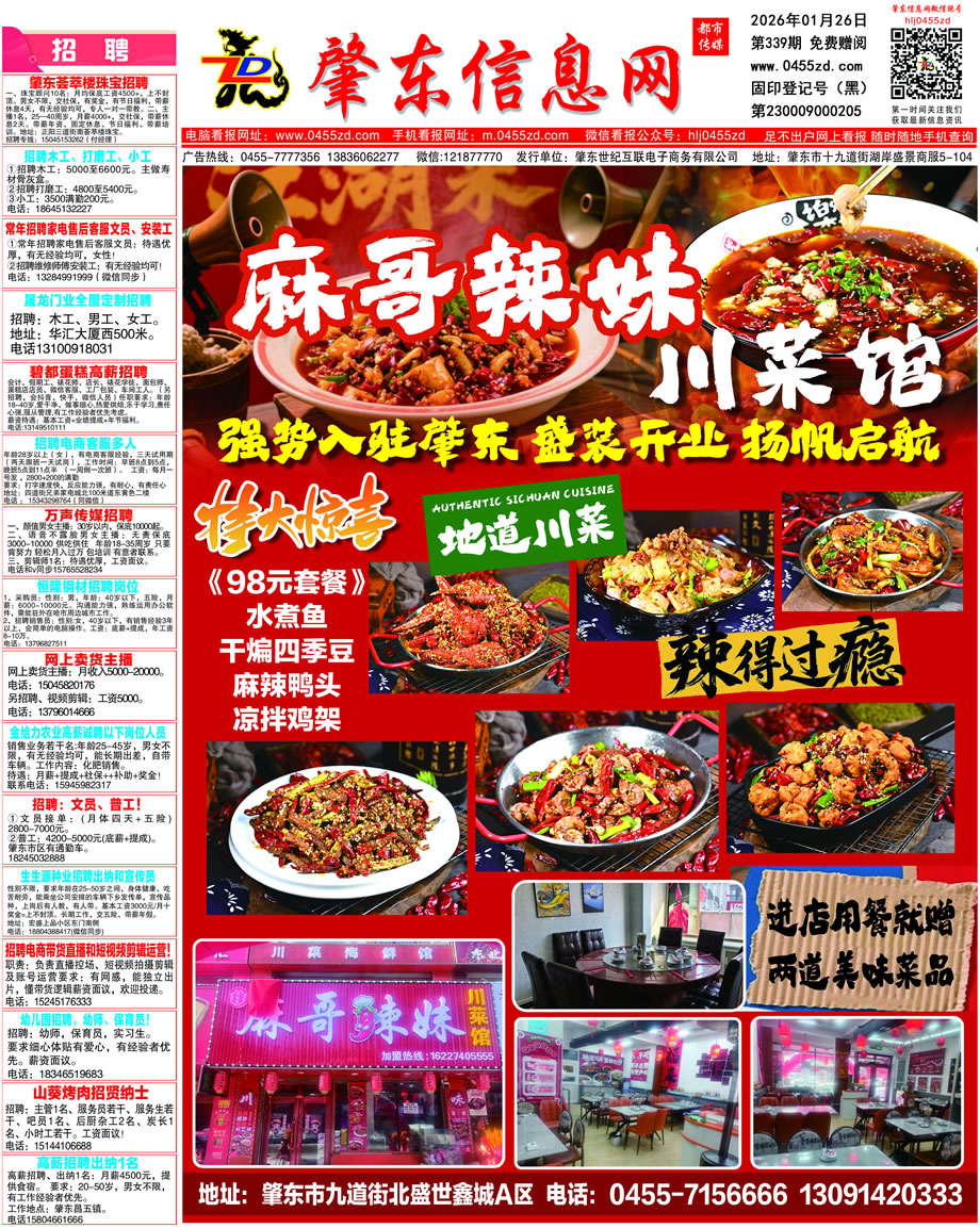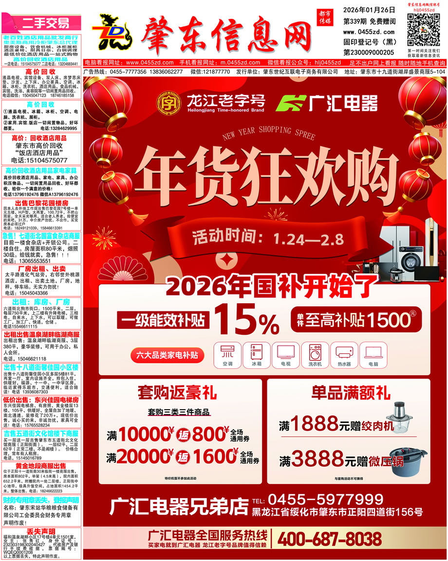 肇東信息網(wǎng)DM報(bào)紙2026年1月26日第339期