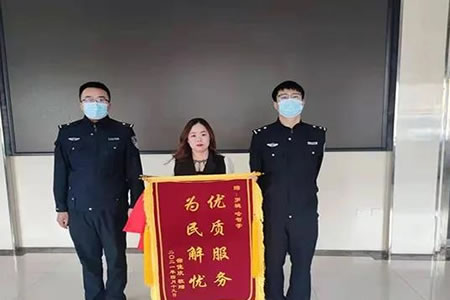 4月19日,肇東市居民宿女士來到南城派出所,將一面印有“優(yōu)質服務 為民解憂”的錦旗送給派出所民警,以表達民警為其找回手機的感激之情。 據了解,近日,宿女士到南城...