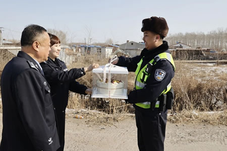 肇東公安:蛋糕送民警 真情暖警營