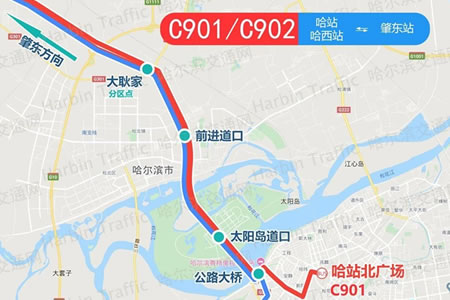 肇東至哈市城際公交分為兩條線路。其中,C901路始至哈站,C902路始至哈西站。主要站點(diǎn)途經(jīng)“肇東火車(chē)站”、“三道街”站、“大耿家”站、“前進(jìn)道口”站、“太陽(yáng)島...