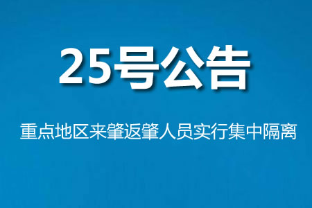 關(guān)于對(duì)重點(diǎn)地區(qū)來肇返肇人員實(shí)行集中隔離的公告