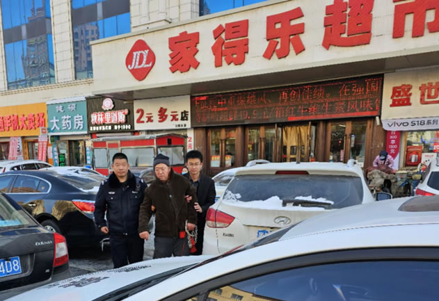 1月22日11時(shí)許,紅旗派出所接到轄區(qū)家得樂超市工作人員報(bào)警稱超市內(nèi)有一名老人找不到家了,接到報(bào)警后紅旗派出所教導(dǎo)員楊玉軍立即帶領(lǐng)輔警張國健、李建成到達(dá)現(xiàn)場,向老人耐心細(xì)致地詢問情況,可老人只記得自己的名字及家住肇東市二糧庫樓,并無法記清具體單元及門牌號(hào),且身上沒有任何證件、手機(jī)及家屬聯(lián)系方式,行動(dòng)也十分不便。