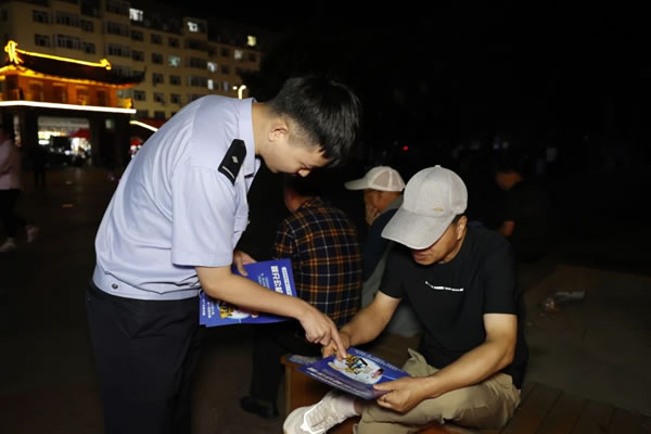 民警利用夜間群眾休閑納涼的有利時機(jī),通過集中宣傳和定點(diǎn)講解等方式,提醒群眾增強(qiáng)安全防范意識。同時,充分發(fā)揮社區(qū)群眾聚集多、消息傳播快、宣傳精度高優(yōu)勢,發(fā)放宣傳資料把“五防”知識送上門、讓安全知識深入人心。