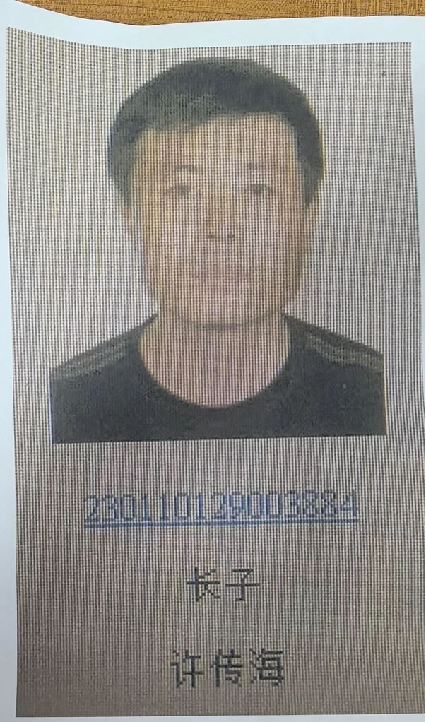被執(zhí)行人:許傳海,男,1970年4月4日出生,漢族,住黑龍江省哈爾濱市香坊區(qū)成高子鎮(zhèn)和平村勝利屯;公民身份證號(hào)碼:230106197004042514。