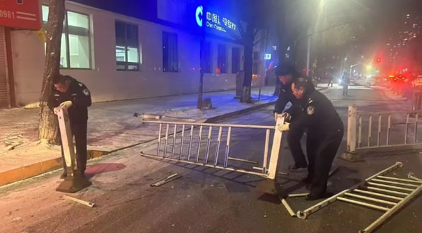 1月28日除夕當(dāng)天,肇東市迎來大范圍低溫降雪,低溫降雪導(dǎo)致城區(qū)路段有結(jié)冰現(xiàn)象發(fā)生,過往車輛時(shí)常發(fā)生打滑失控,撞上馬路中間的護(hù)欄,變形、倒地的破損護(hù)欄嚴(yán)重影響車輛及群眾的出行安全。肇東市公安局奮斗派出所民輔警巡邏至八道街建設(shè)銀行路口時(shí),發(fā)現(xiàn)路口中間的隔離護(hù)欄被撞壞,過往車輛紛紛避讓,影響正常的道路通行,加之天黑,稍不留神,極易造成安全事故,存在很大的安全隱患。見此情景,民警劉長(zhǎng)軍、吳復(fù)生、王,、輔警邵建壹迅速來到事發(fā)現(xiàn)場(chǎng),及時(shí)將撞壞的護(hù)欄扶正擺好,把護(hù)欄移至原位,同時(shí)指揮過往車輛完全通行。經(jīng)過民警二十多分鐘的精心維護(hù),終于把斷裂護(hù)欄修好歸位,保證了車輛行人的通行安全,受到了過往司機(jī)朋友的點(diǎn)贊。