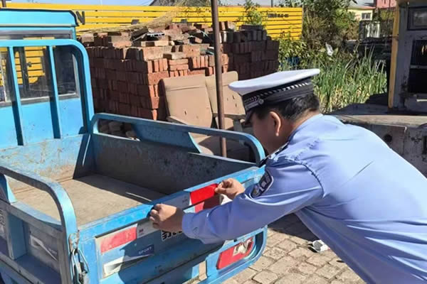 為了進(jìn)一步保障村民夜間出行安全,民警還為村民的農(nóng)機(jī)具和農(nóng)用車輛粘貼了反光標(biāo)識。農(nóng)村地區(qū)夜間光線較差,容易發(fā)生交通事故。反光標(biāo)識在燈光的照射下會格外醒目,能有效提高農(nóng)用車輛的辨識度,降低事故風(fēng)險(xiǎn)。工作人員仔細(xì)地將反光標(biāo)識粘貼在農(nóng)用車輛的顯眼位置,并向村民們講解反光標(biāo)識的重要作用和日常維護(hù)方法。