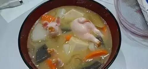據(jù)報(bào)道,這些其實(shí)并不是真的豬,而是一個(gè)個(gè)制作逼真精細(xì)、由其他材料制成的仿制品。它們被烹制成所謂的“日式炸豬排”、“什錦湯”等料理,雖說(shuō)構(gòu)思堪稱奇特,但大多數(shù)網(wǎng)友多反饋?zhàn)约罕弧皣樍艘惶,并紛紛表示難以接受。