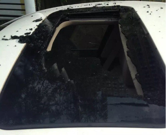 在一個(gè)雷電交加的日子里,無錫有一位車主像往常一樣,去小區(qū)附近停車的地方取車。走到愛車旁邊的那一刻,車主整個(gè)人驚呆了!天窗的地方竟被劈了一個(gè)大窟窿。